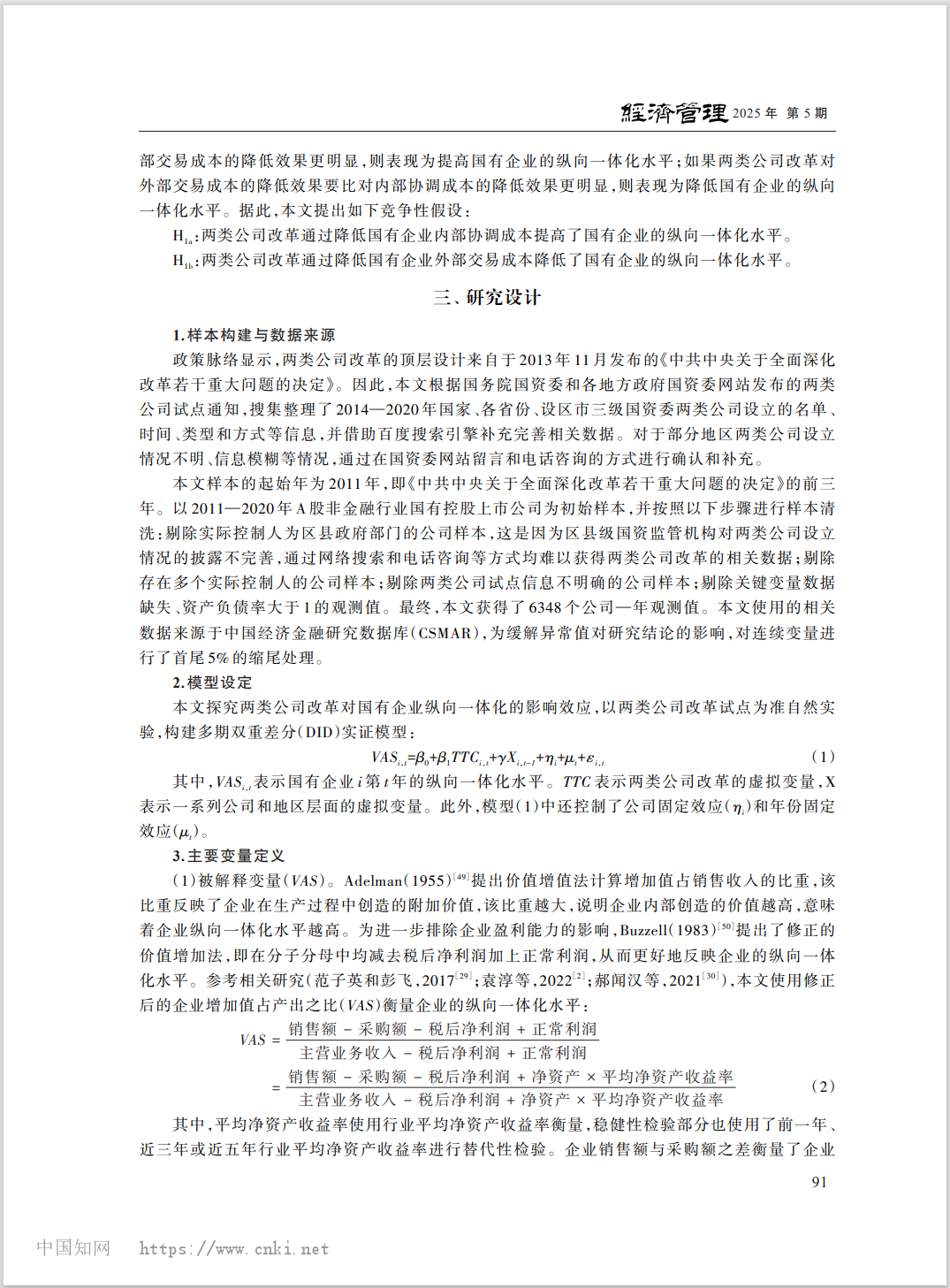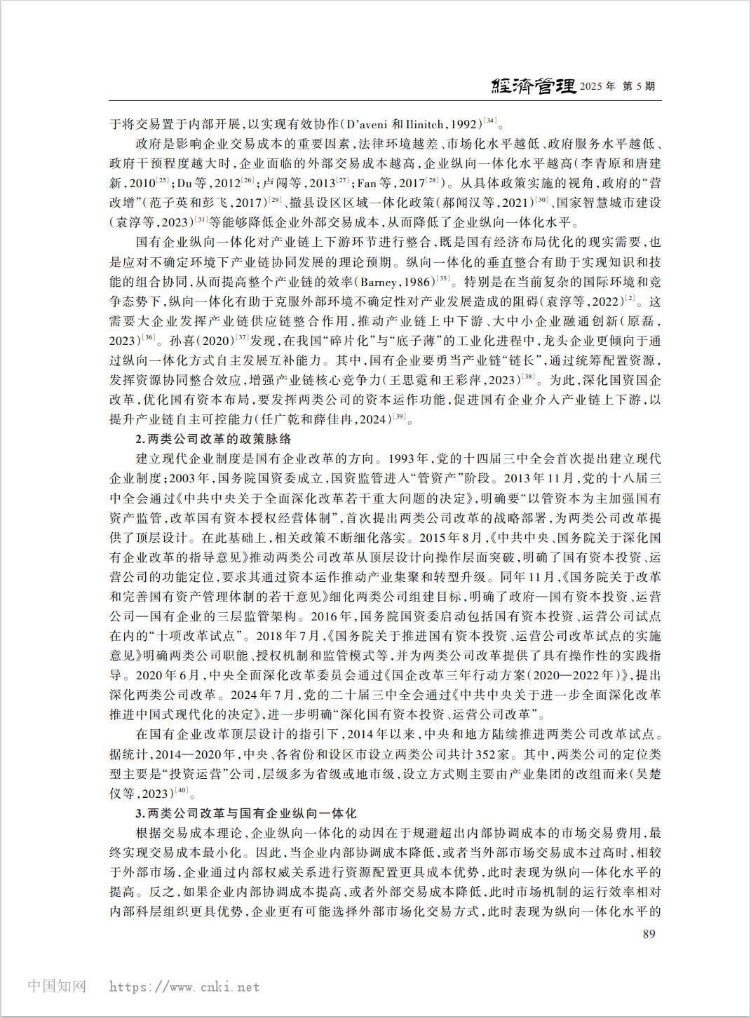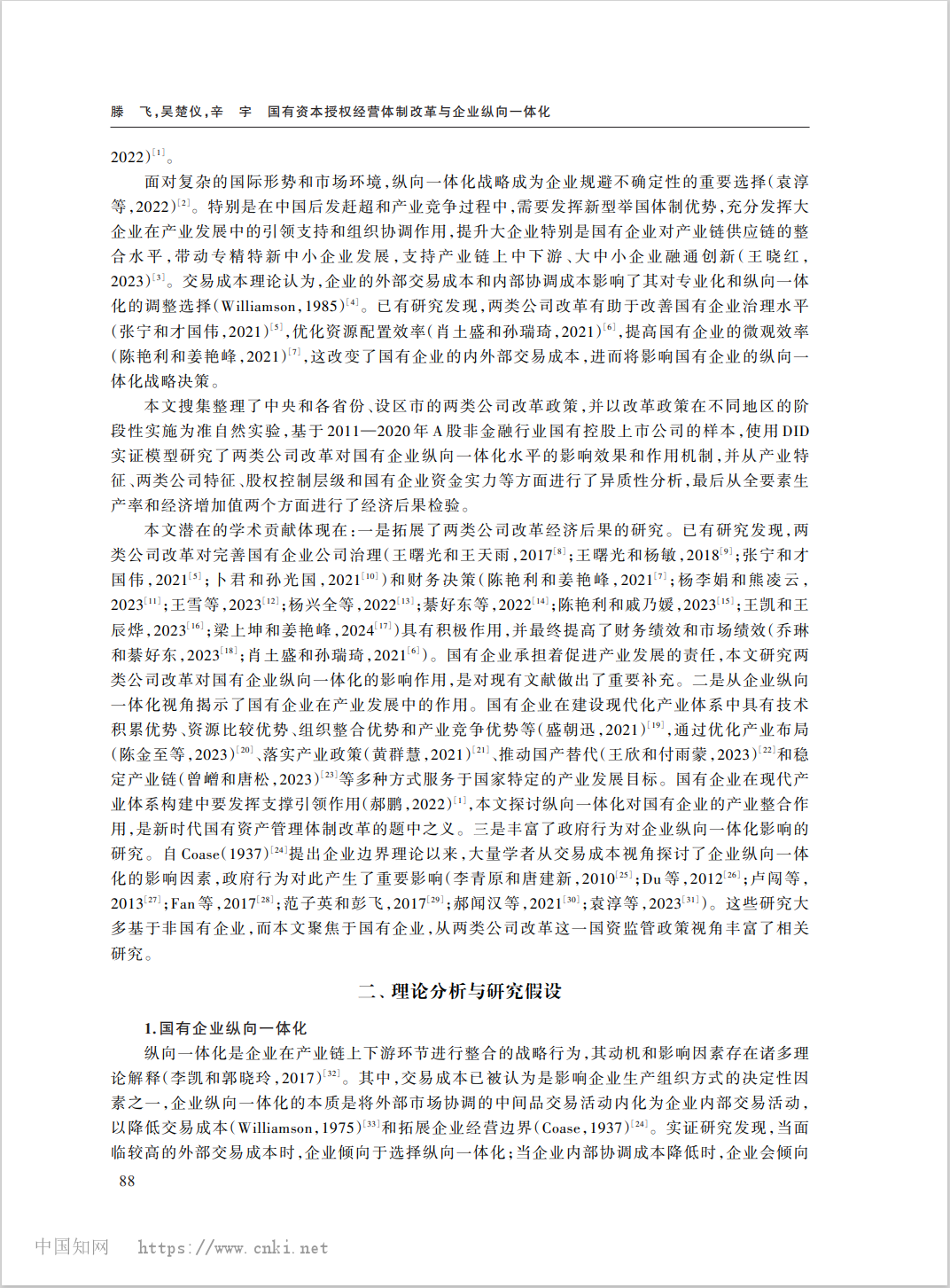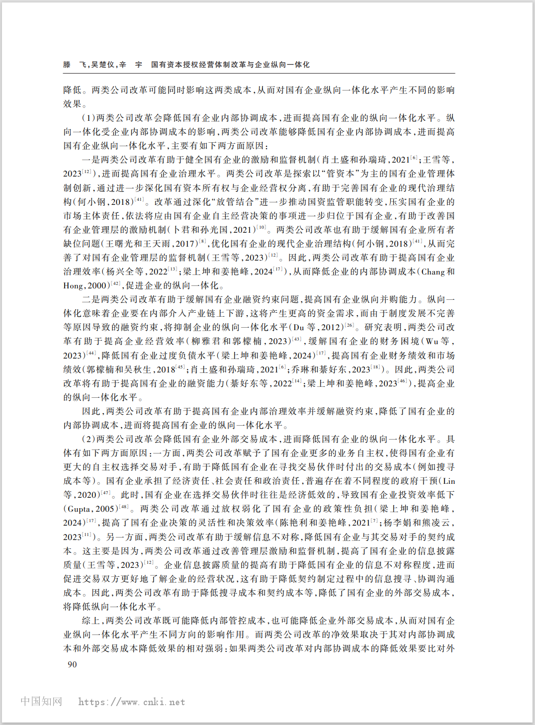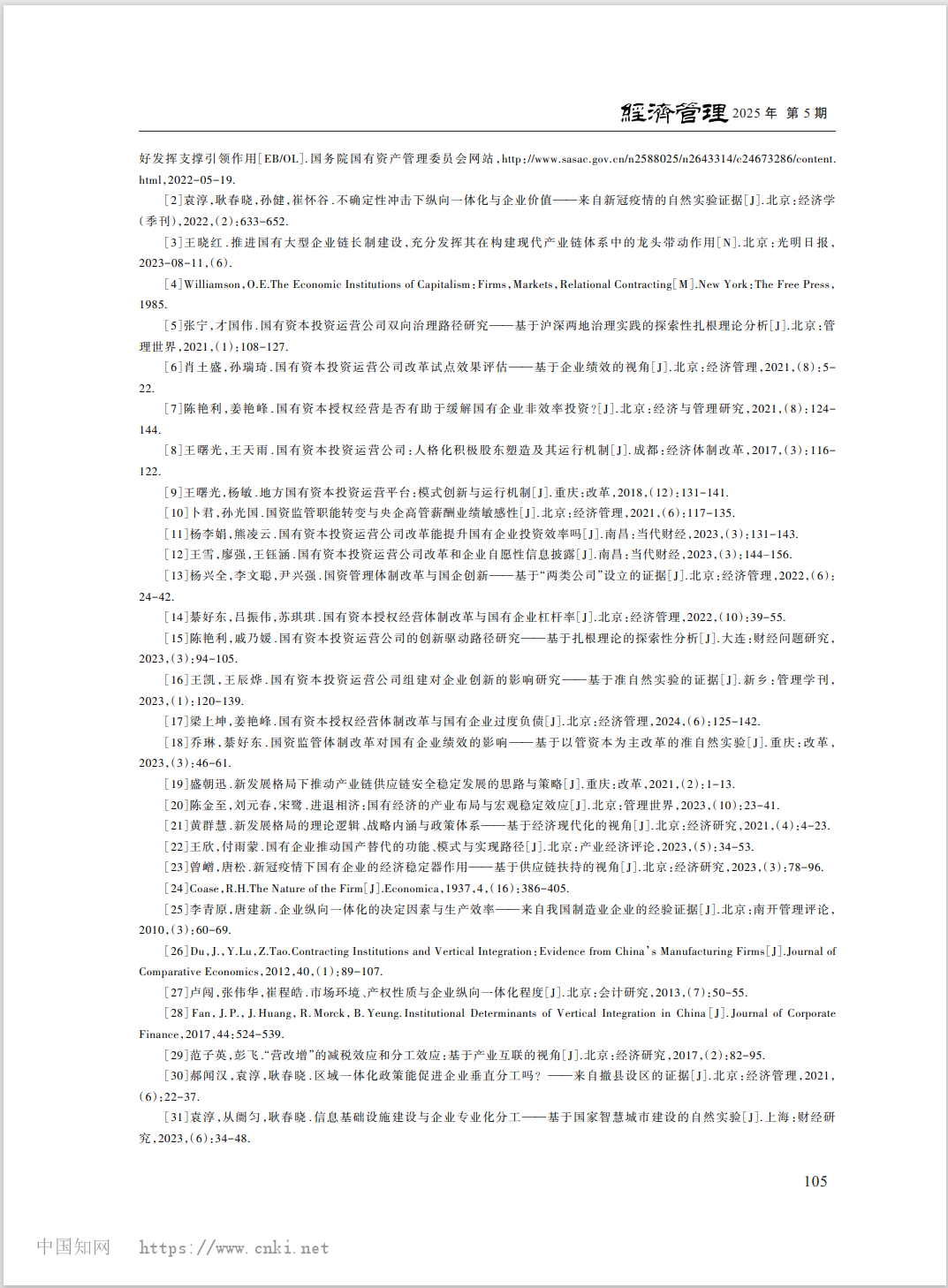 《国有资本授权经营体制改革与企业纵向一体化——交易成本视角的实证检验》。