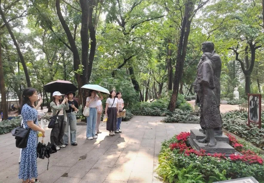许悦:这是我第一次来广州烈士陵园。之前我在老家合肥也参观过渡江战役纪念馆,虽然是不同的地方,但是是相同的心境,都是怀着对那些勇往无前、不畏牺牲的共产主义战士的崇敬之心。我仔细地看着他们每一个人的雕像,了解他们的英雄事迹,想象着那一张张坚毅的面孔,他们义无反顾,为革命事业献出了自己年轻宝贵的生命。我从心底发出感慨,现在祖国的强大繁荣离不开这些革命先烈们的牺牲,同时我想他们在天的英灵肯定也会感到欣慰,因为他们用生命守护的国家和人民继续着他们的事业——为实现中华民族伟大复兴而努力奋斗!