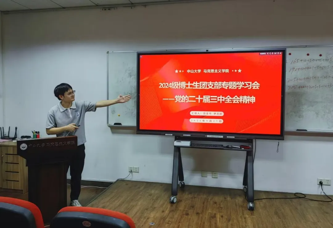 在“党的二十届三中全会精神”专题学习会上,2024级博士生团支部书记尹志鹏作了“党的二十届三中全会精神”主题汇报。他介绍了党的二十届三中全会及其审议通过的《中共中央关于进一步全面深化改革、推进中国式现代化的决定》的基本内容,鼓励大家根据自己的专业专长,有思考、有针对性地学习研究并深入贯彻党的二十届三中全会精神。