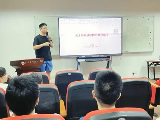 骆红旭老师依据现阶段博士的基本情况作了“关于高质量读博的几点思考”的专题分享。在心态调整方面,骆老师提醒同学们对于博士生涯要保持积极的心态,做到“战略上藐视,战术上重视”。关于博士生涯规划,骆老师分享了一份详细的学年计划以及自己开展学术研究的经验,如建立数据库,形成自己的学术图谱等。最后,骆老师建议大家寻找科研实践中的自我认同,永葆家国情怀,将科研成果深深植根于祖国大地上。