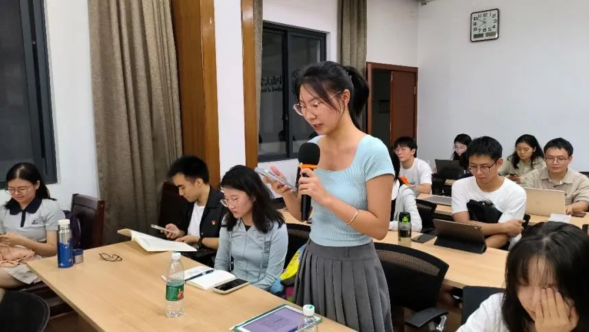 支部成员郑惠心和温炎敏就习近平总书记的重要文章《新时代新征程中国共产党的使命任务》分享9月理论学习心得。郑惠心指出,这篇文章深刻阐述了中国式现代化的一系列重大理论和实践问题,是对中国式现代化理论的极大丰富和发展。在这篇文章中,习近平总书记围绕中国式现代化作出一系列重要论述,进一步深化对中国式现代化的内涵和本质的认识,概括形成中国式现代化的中国特色、本质要求和重大原则,初步构建中国式现代化的理论体系,使中国式现代化更加清晰、更加科学、更加可感可行。温炎敏认为,新时代新征程中国共产党使命任务的庄严提出为我们勇担历史责任进行了思想动员、明确了奋斗方向。作为新时代新征程上的中国青年,我们既拥有广阔的发展空间,也承载着伟大的使命任务,必须坚定理想信念,始终保持昂扬向上、拼搏进取的奋斗姿态,锤炼本领技能,全面发展自身,紧跟党走好新时代的长征路,为强国建设、民族复兴注入“青春力量”。