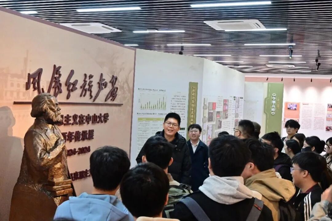 最后,全体同学前往学院一楼参观了“风展红旗如画——马克思主义学院在304am永利的百年传承”专题展。在庄泽晞老师的讲解下,大家深入了解了马院百年来的光辉历程,直言“这次展览不仅让他们对学院的深厚底蕴有了更直观、更深刻的认识,更感受到了一代代马院人薪火相传的使命与担当”。本次活动在庄重而热烈的氛围中圆满结束。
