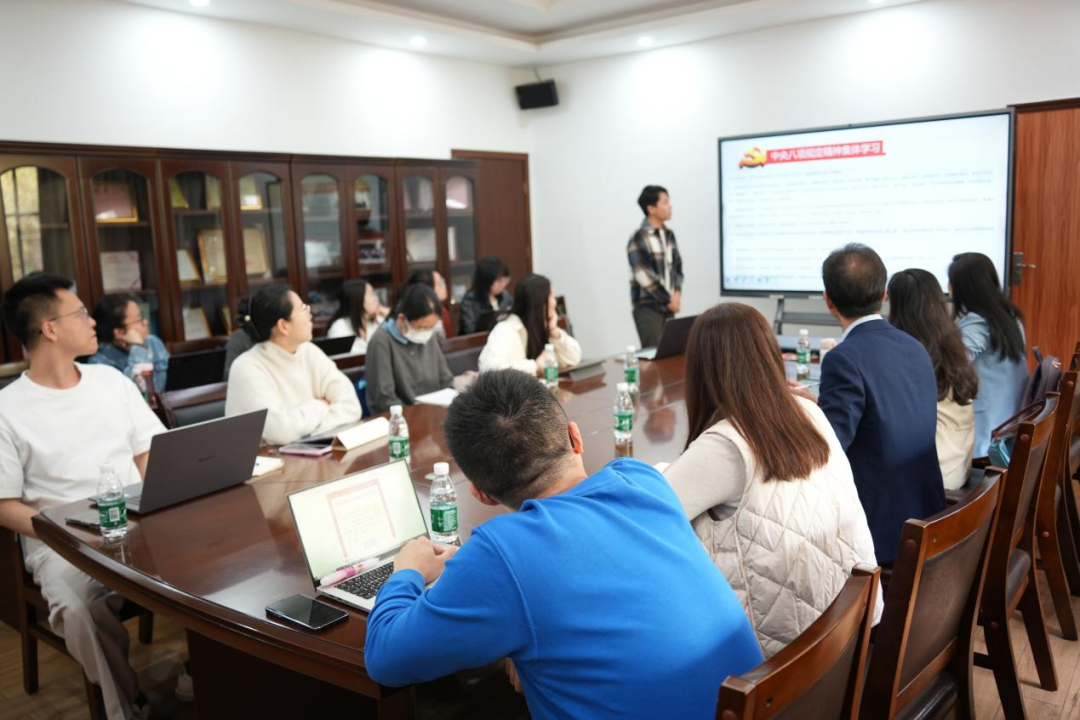为做好深入贯彻中央八项规定精神学习教育宣讲工作,2025年4月3日下午,马克思主义学院博士生宣讲团在文科楼307会议室召开第二次集体备课会。院长沈成飞教授、学院党委副书记郭燕、邓华副教授及博士生宣讲团成员共十余人参加本次会议。朱祺助理教授主持本次会议。