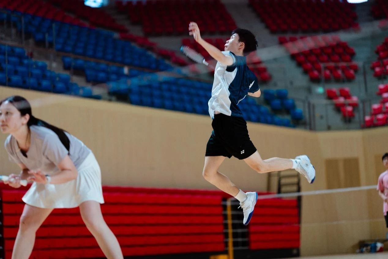 赛场之上,气氛热烈而温馨。参赛师生身姿矫健、配合默契。每一次挥拍都挥洒汗水、全力以赴,展现了顽强拼搏的体育精神。面对比分胶着,运动员们沉着冷静,在挑战中坚持到底,掌声与欢呼声此起彼伏。羽毛球在场上穿梭,划出一道道弧线,汇成一场场精彩纷呈的视觉盛宴。场边观众被师生间友爱互助的氛围深深感染,加油呐喊声不绝于耳。