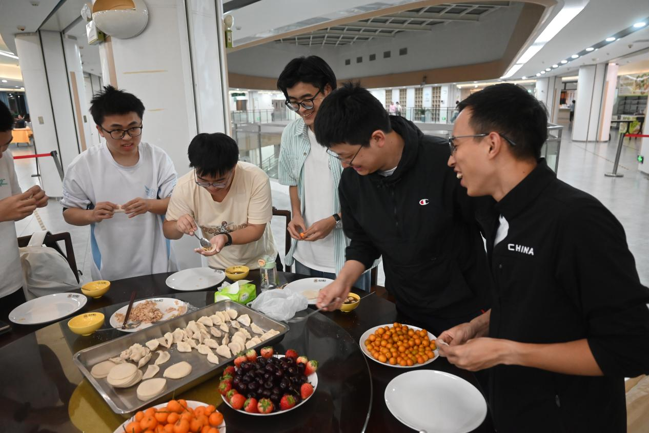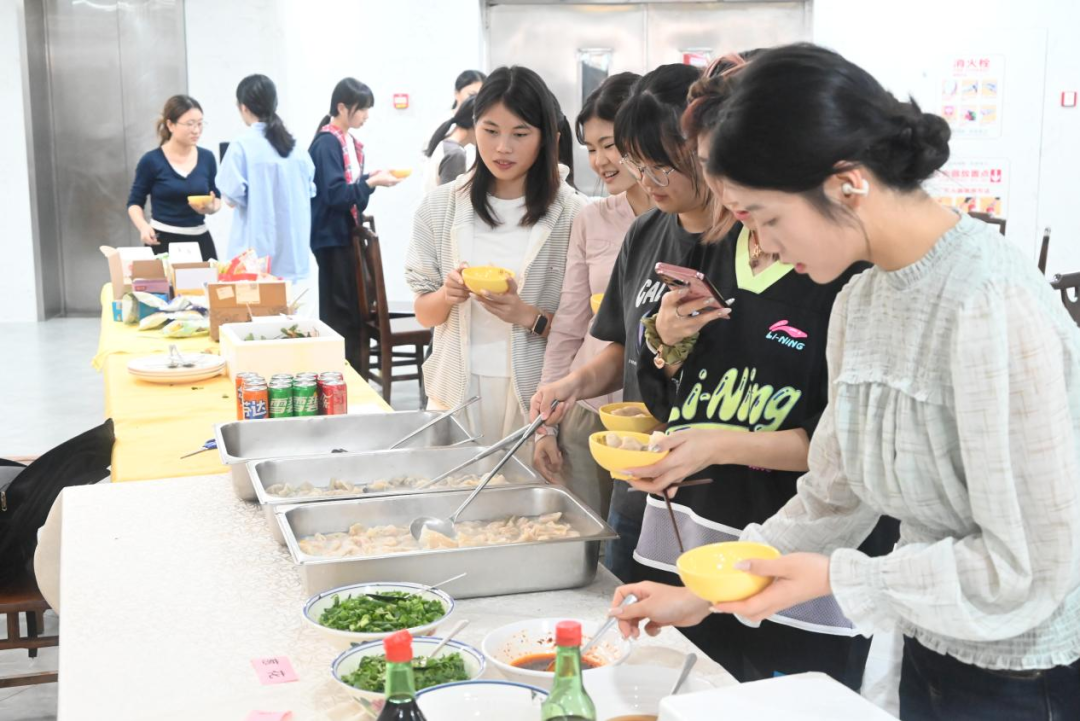 师生在欢声笑语中同包团圆饺